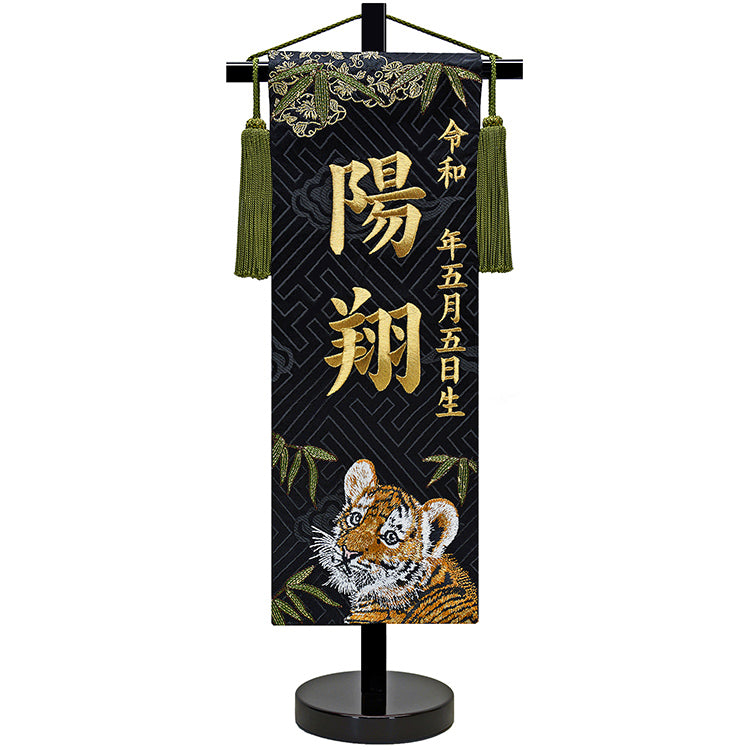 刺繍入り名前旗 【未来子虎】 生年月日入り 飾台付