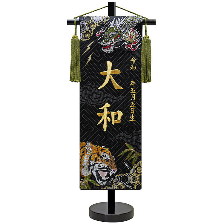 刺繍入り名前旗【神威龍虎伝】 生年月日入り 飾台付