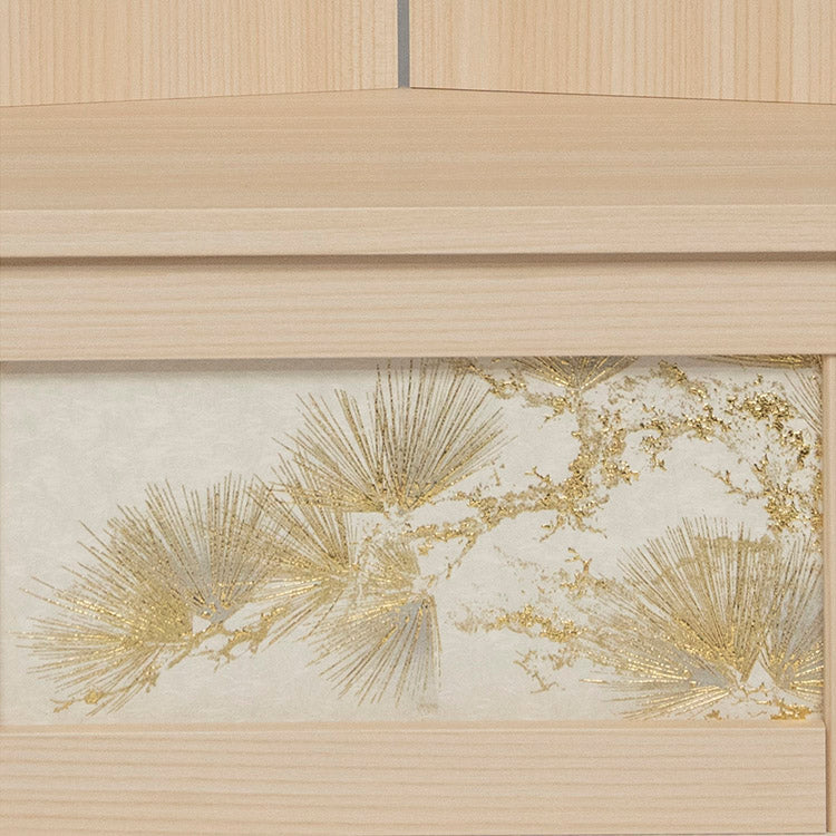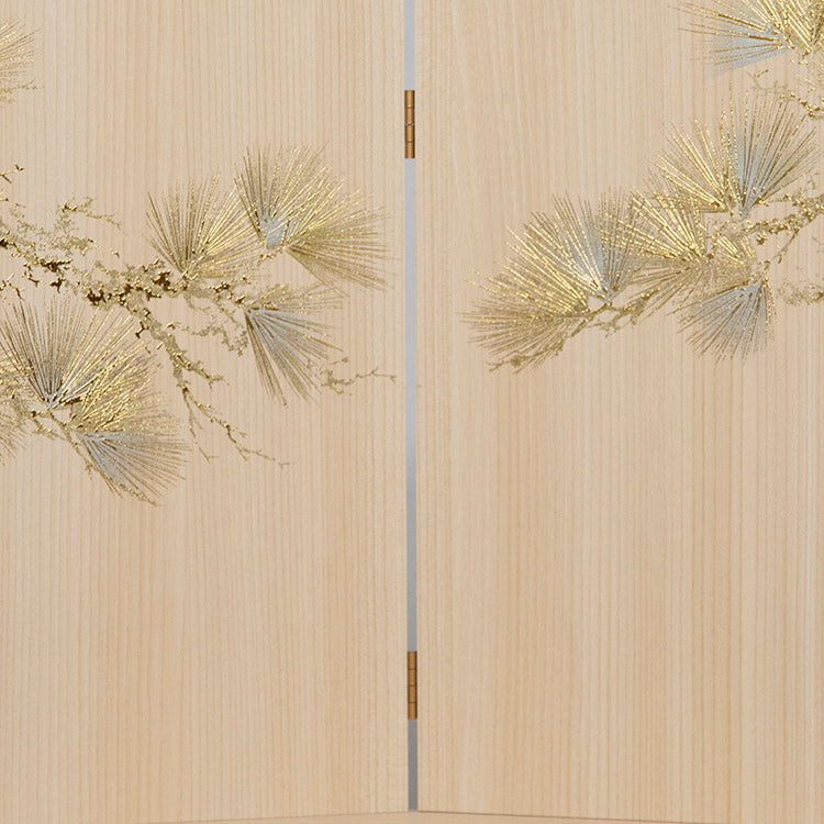 大屏風に彩った金彩松が、兜の凛々しさを引き立てます。