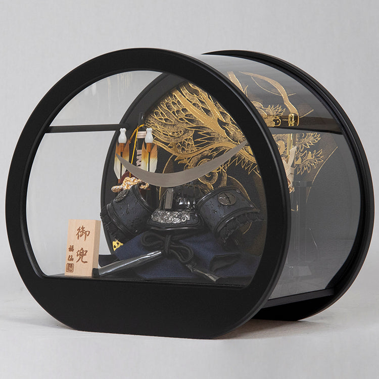 背景の龍が伊達政宗公の兜を華やかに演出しています。