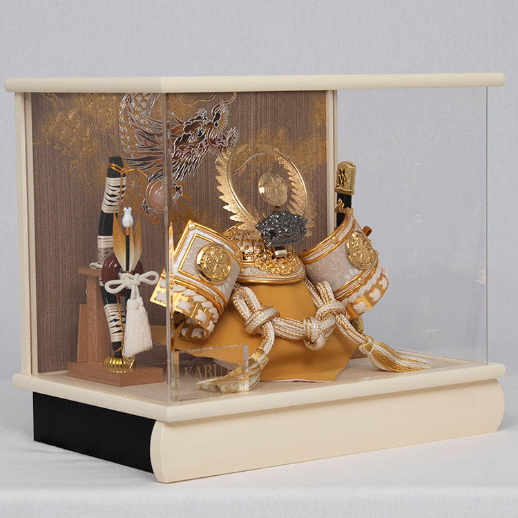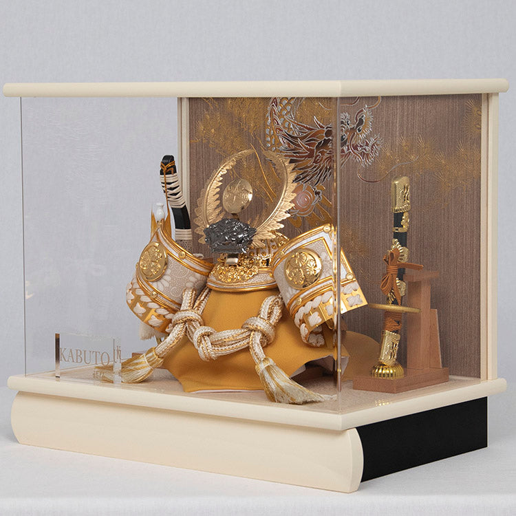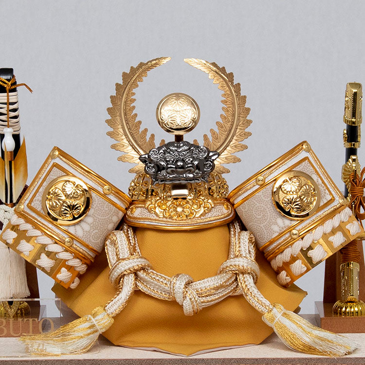 背景を木目調にすることで金色と白を基調とした徳川家康公の兜を際立たせました。