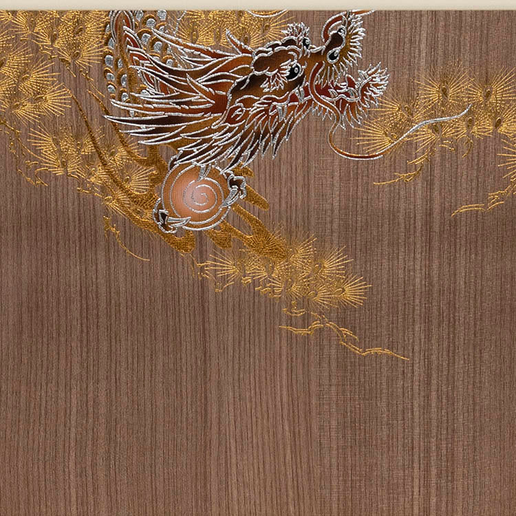 木目調の背景には勇壮な龍を配し、落ち着いた雰囲気の中にも力強さを演出しています。