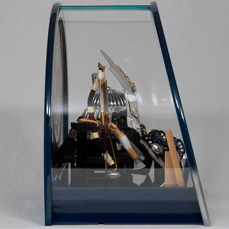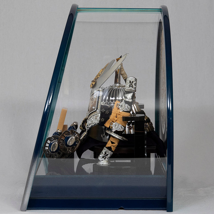 青を銀色でぼかしたおしゃれな半円型のケース飾りです。