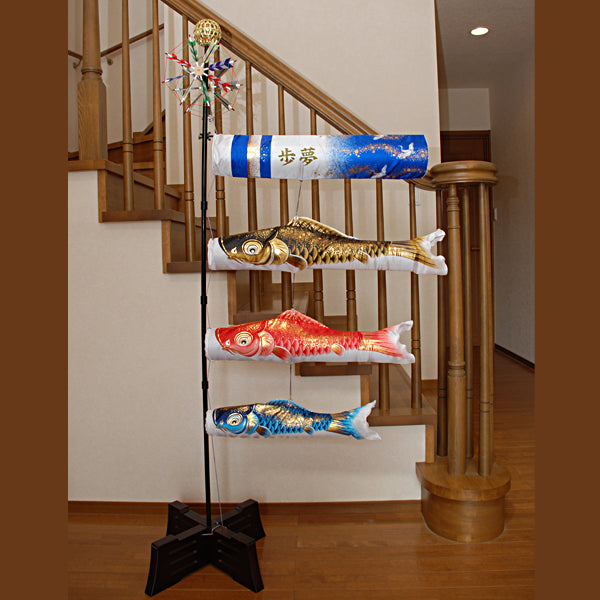 ●吹流し60cm黒鯉70cm赤鯉60cm青鯉50cm高さ約163cm ポリエステル、専用ポール・スタンド付