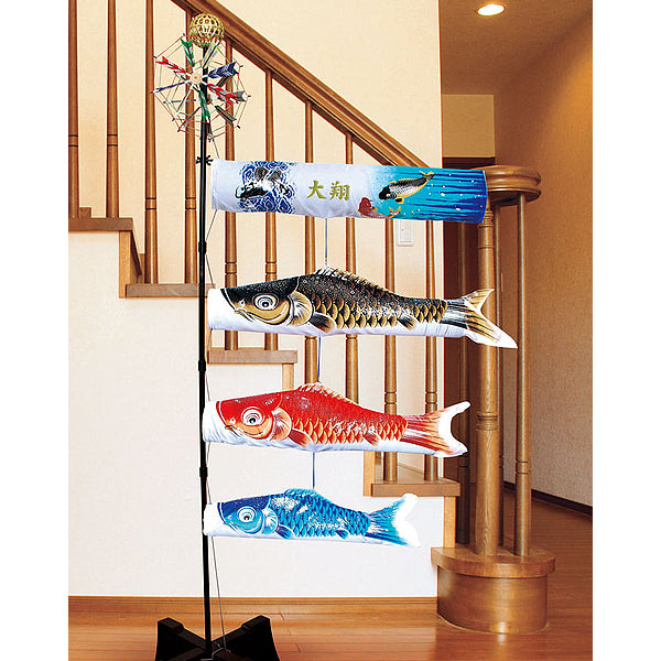 ●吹流し60cm黒鯉70cm赤鯉60cm青鯉50cm高さ約148cm ポリエステル、専用ポール・スタンド付