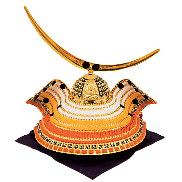 白色・黄金色・緋色の三色の縅糸で職人が丹念に編み上げました。