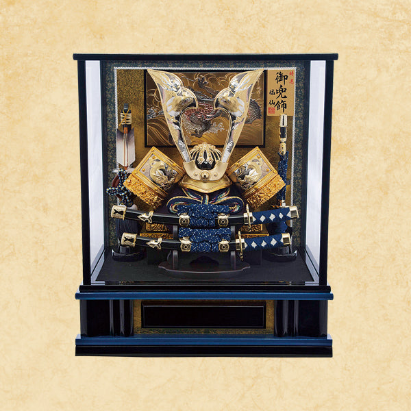 大鍬形に配した天に向かって上る龍が勇ましい兜ケース飾りです