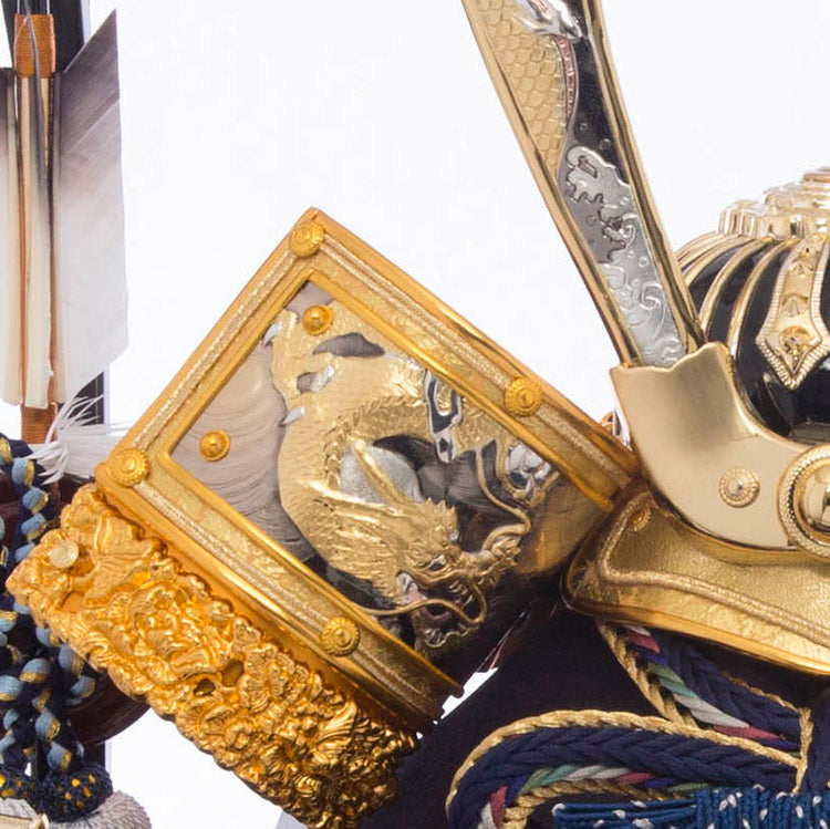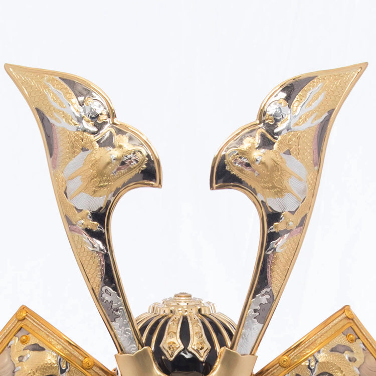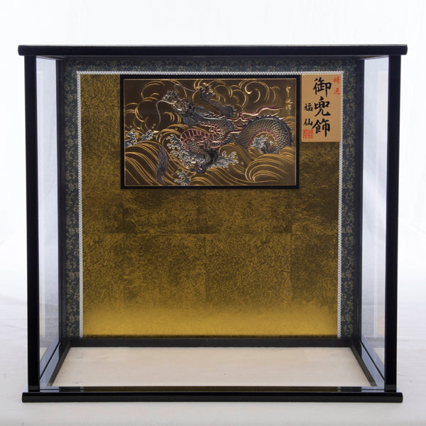 前立てに配した天に上る勇壮な龍が特徴的な兜ケース飾りです。
