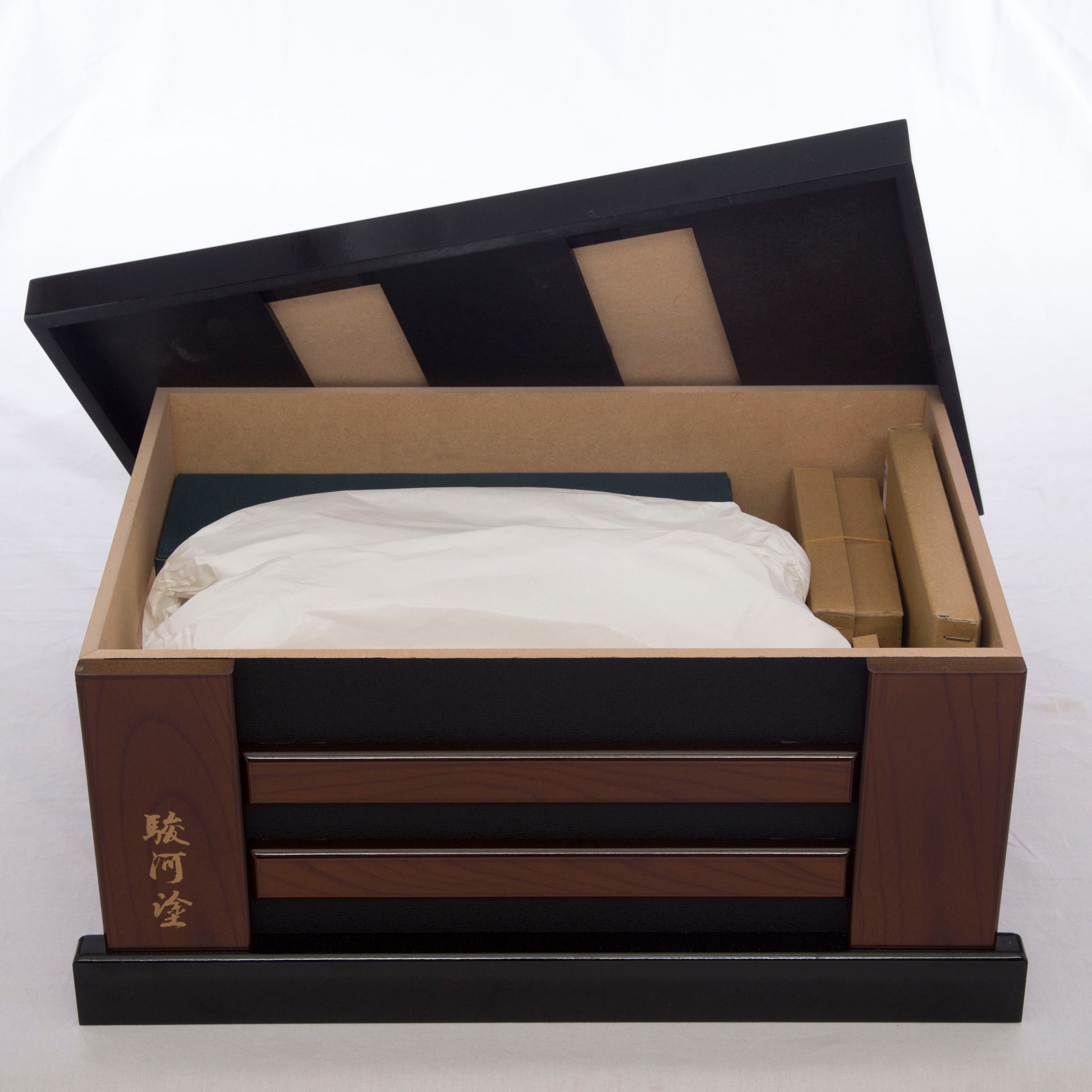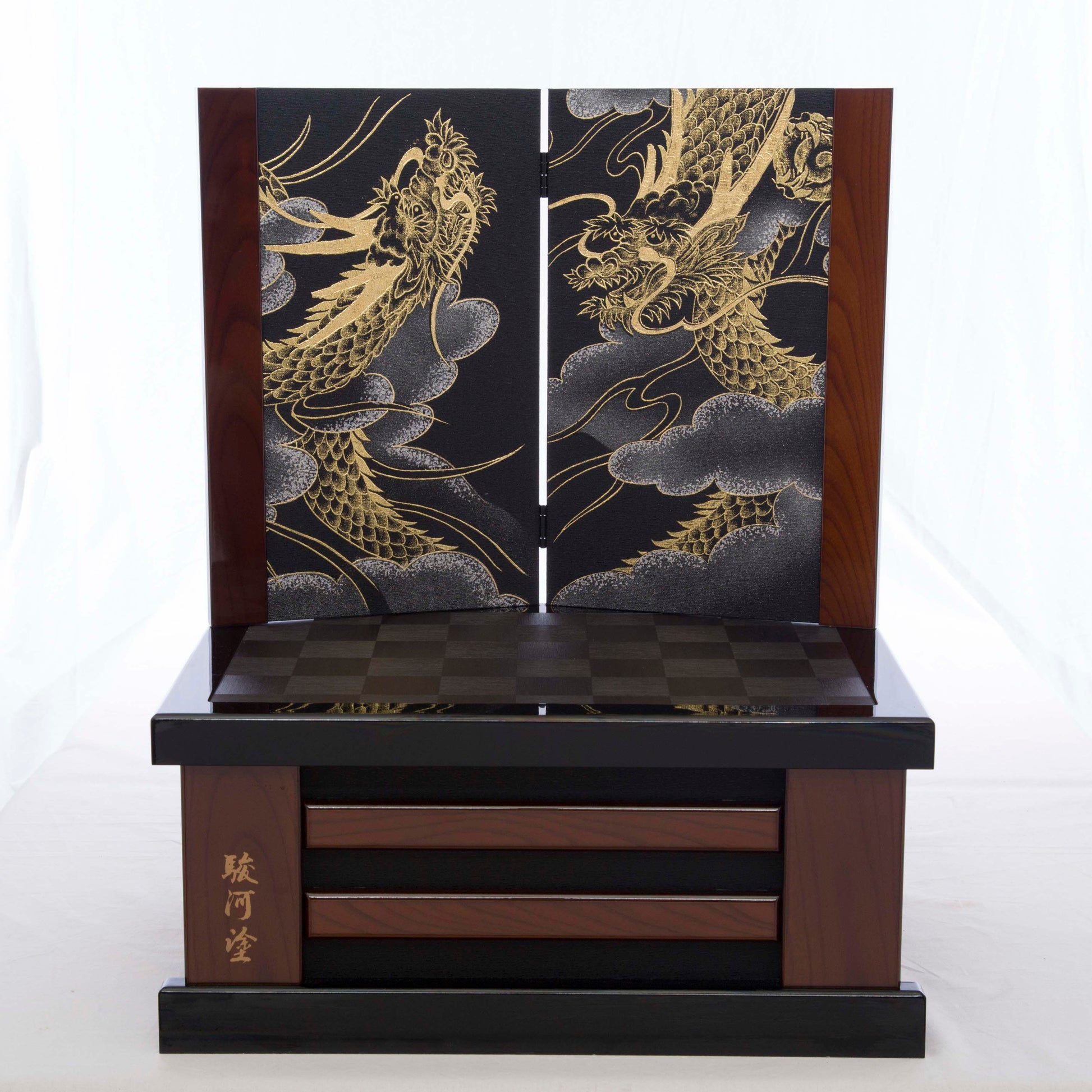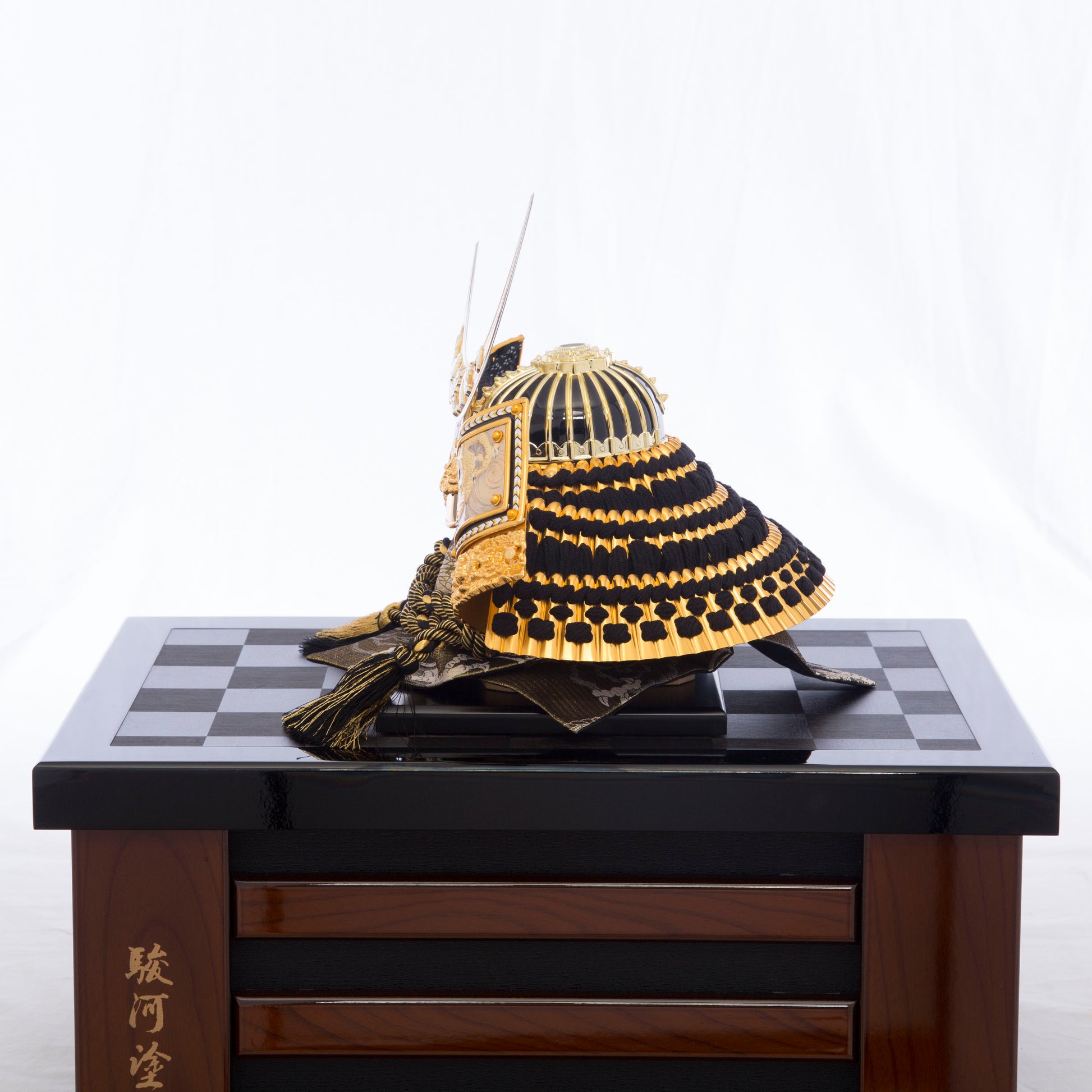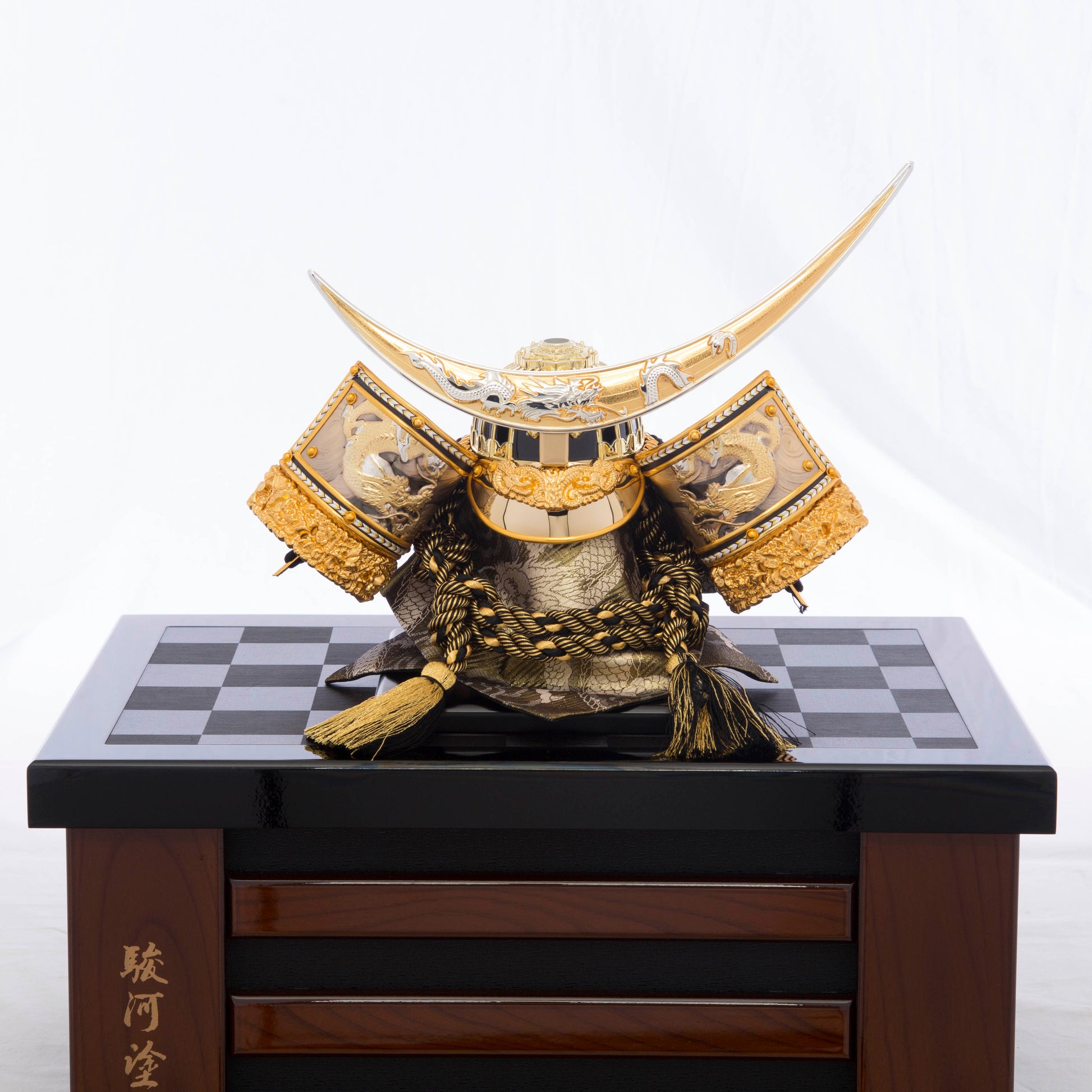 黄金色の三日月の前立てには銀龍が躍動しています。
