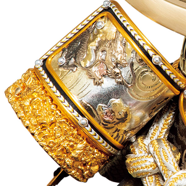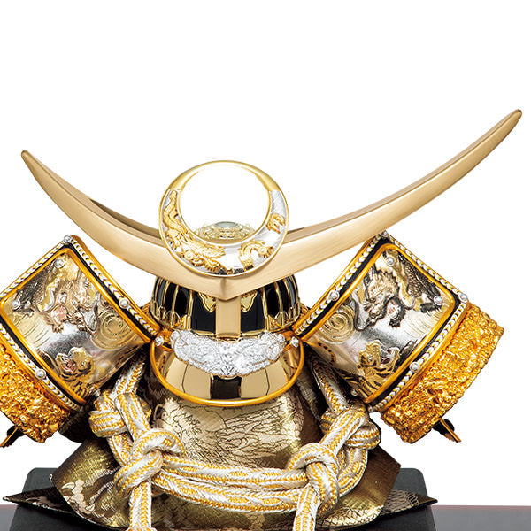 「義」の武将上杉謙信公の兜飾りです。赤と黒のぼかしが美しい会津塗の台屏風です。台屏風に配した松と鷹が優雅さと迫力を演出しています。