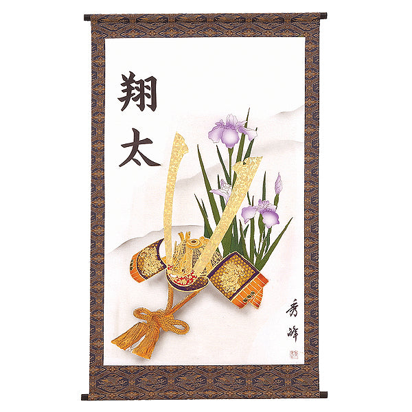 手染め掛軸 金兜と菖蒲 kjsw9524