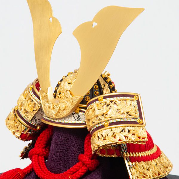 小札には金箔を職人が丁寧に箔押しし、鍬形は純金鍍金の力強い鍬形です