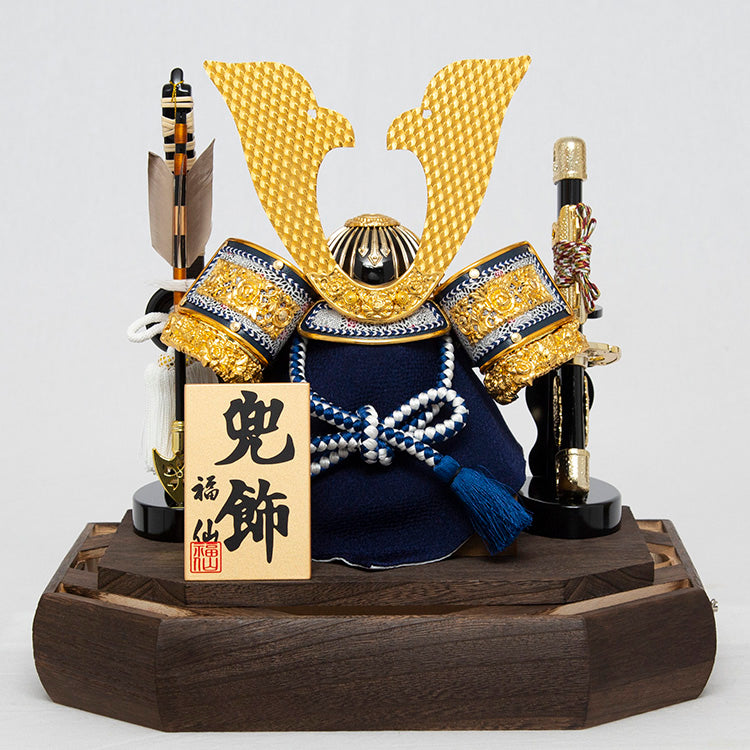 大きな金鍬形と蒼色の忍の緒が爽やかさと迫力を演出しています。