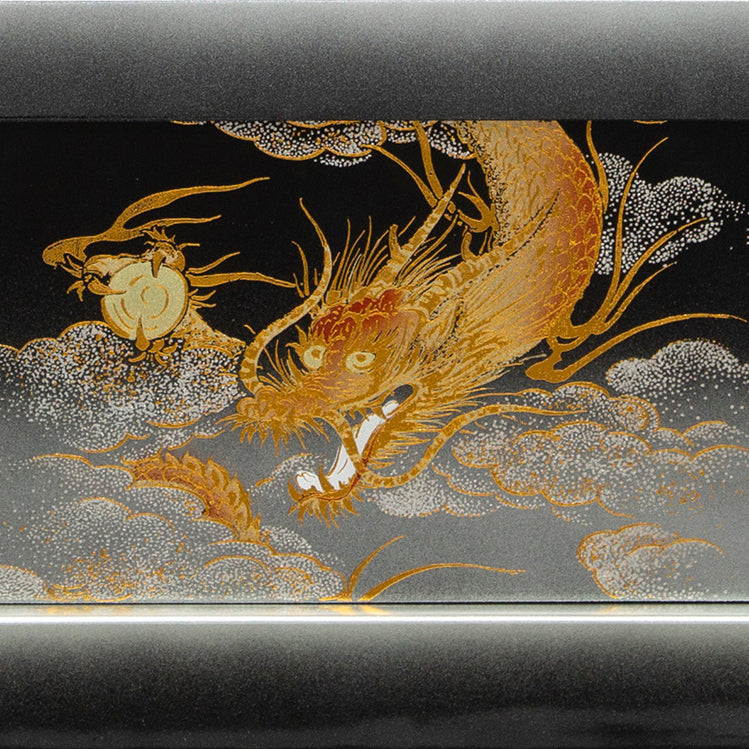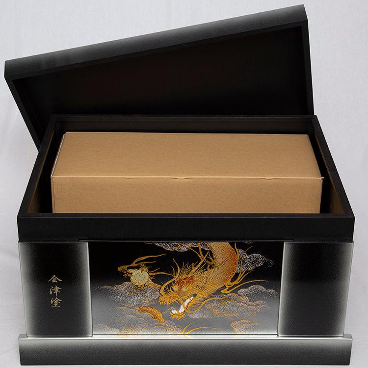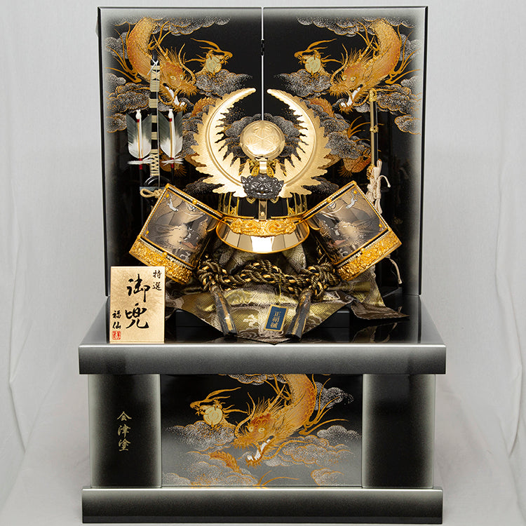 黒地に銀のぼかしが美しい会津塗の台屏風です。