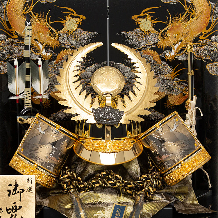 徳川家康公と上杉謙信公の前立てがセットになって、付け替えて記念撮影などができます。