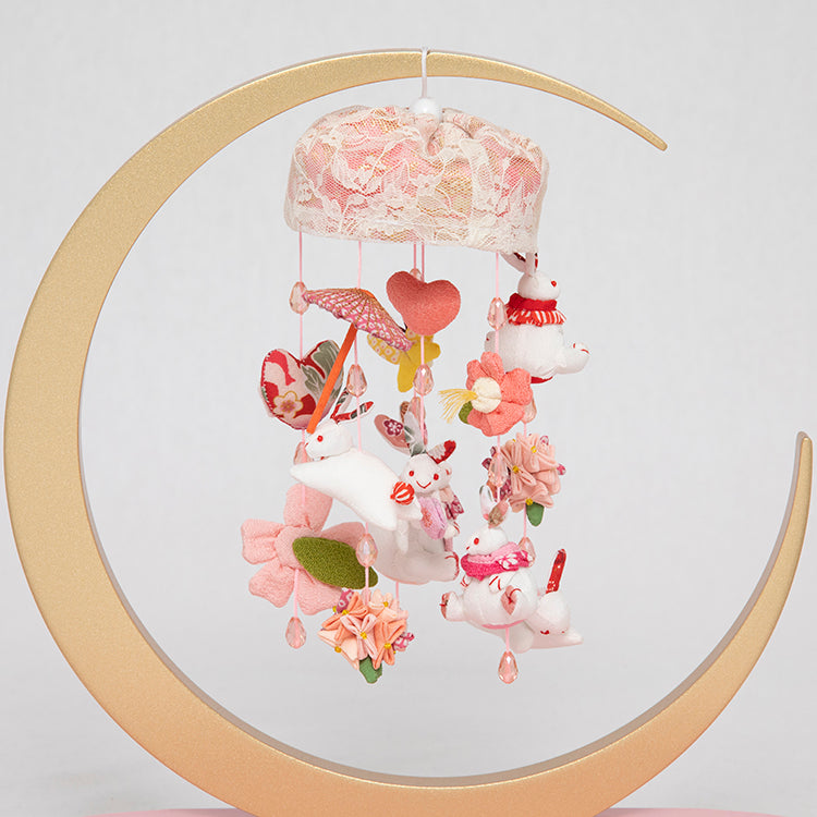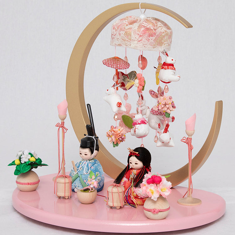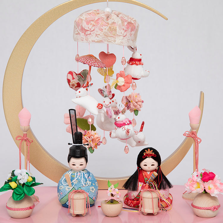 うさぎや桜のつるし飾りがお人形を豪華に演出します。