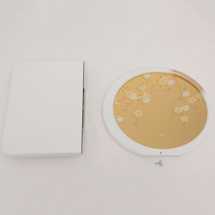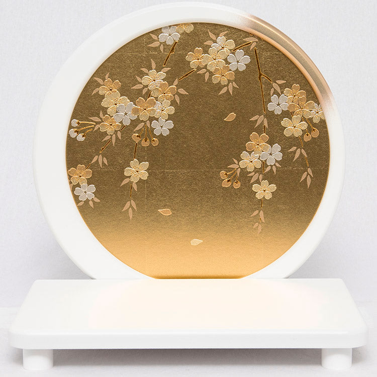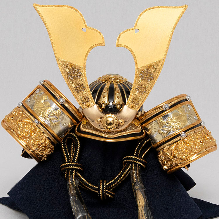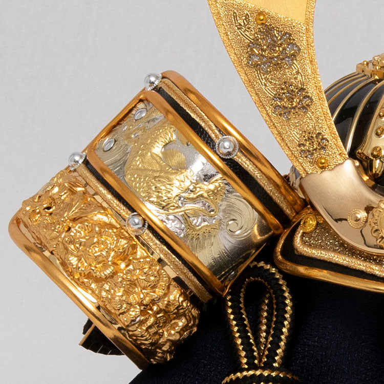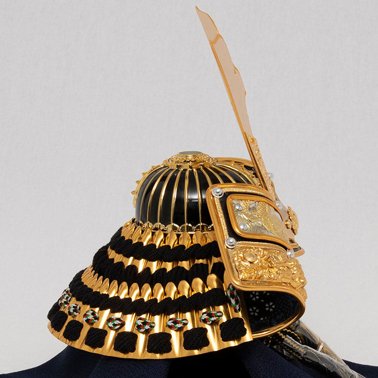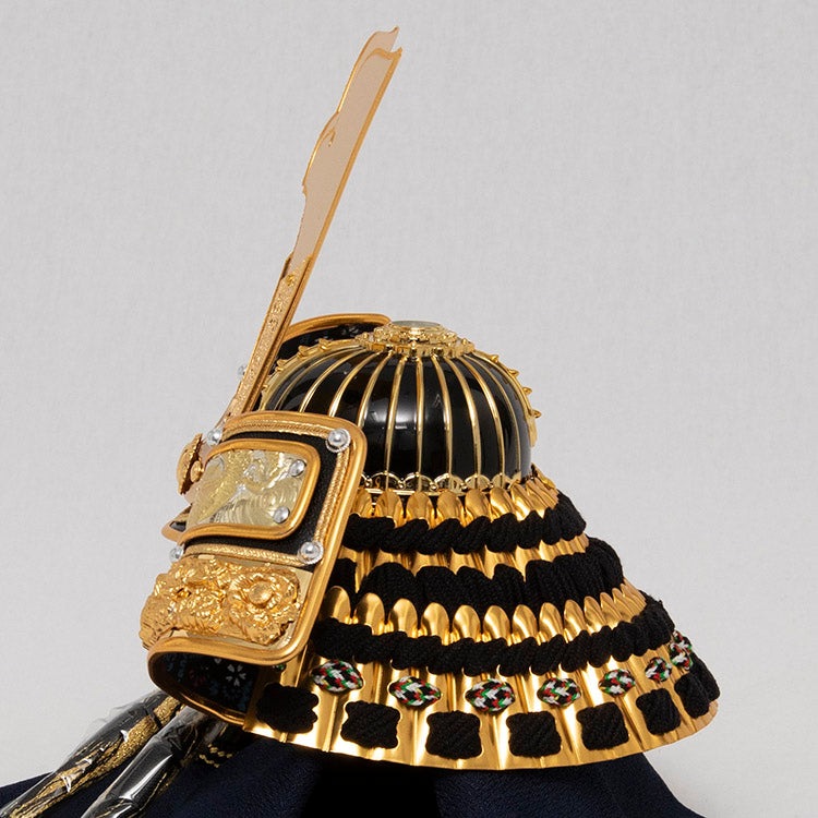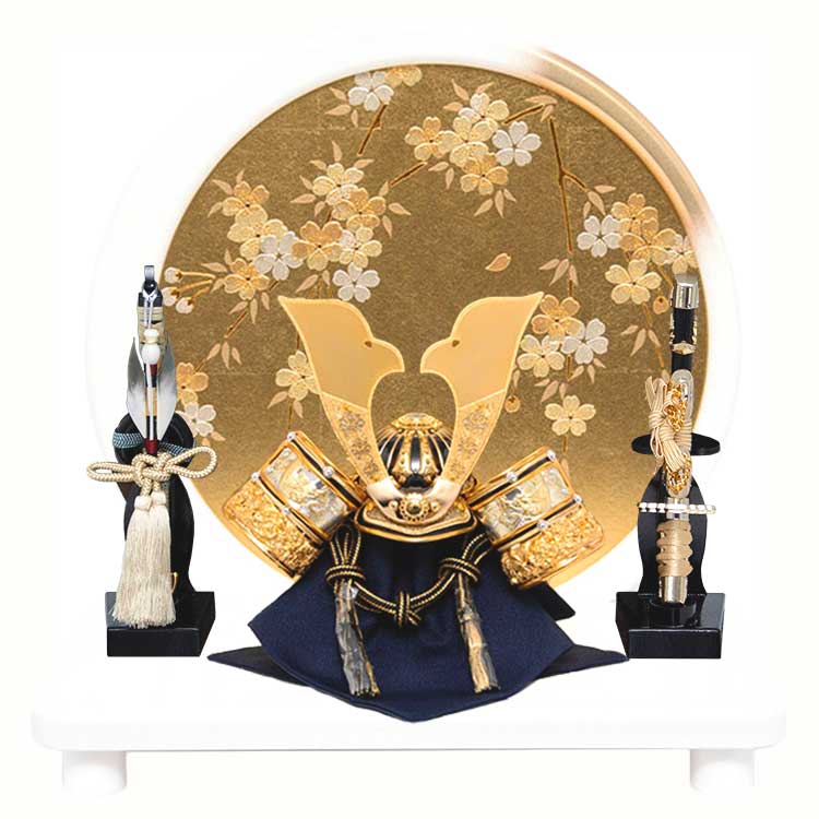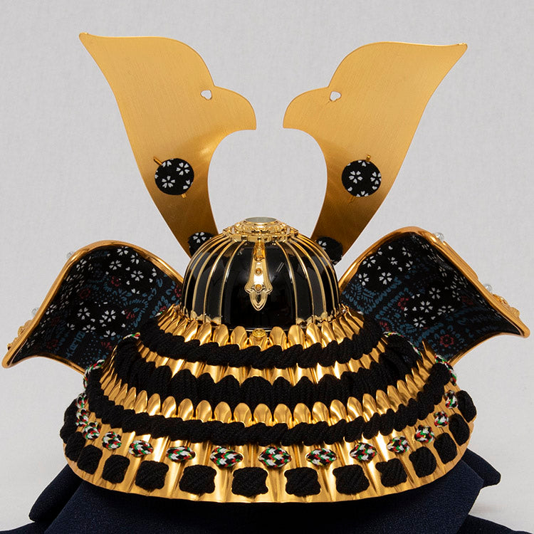 背景の金彩桜が特徴の兜飾りです。