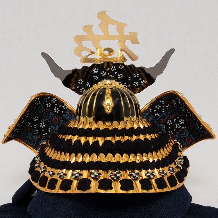 置き場所を選ばないコンパクトなサイズと、木目の美しい飾り台に直江兼続公の兜を