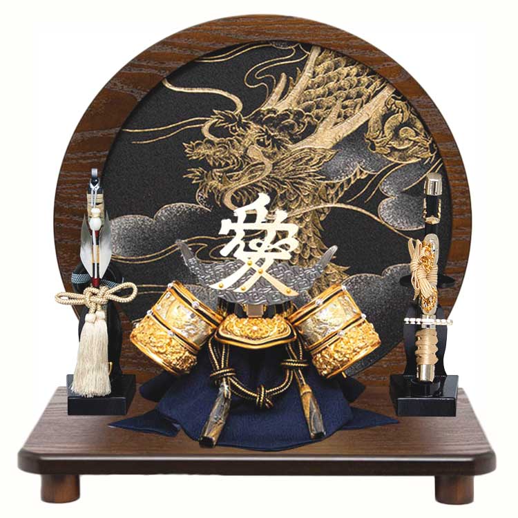 飾る場所を選ばない木目の美しい台屏風が得意調的な兜飾りです。
