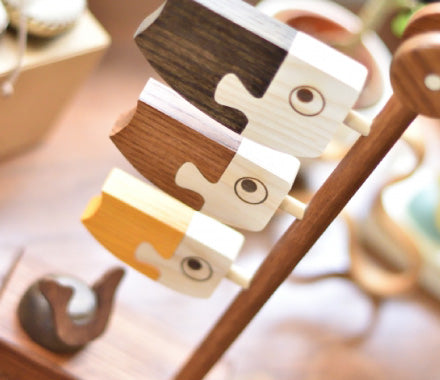 【木都】の木製こいのぼりは「お子様が手にとって遊べる鯉のぼり」をコンセプトに作られています。