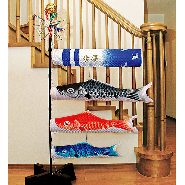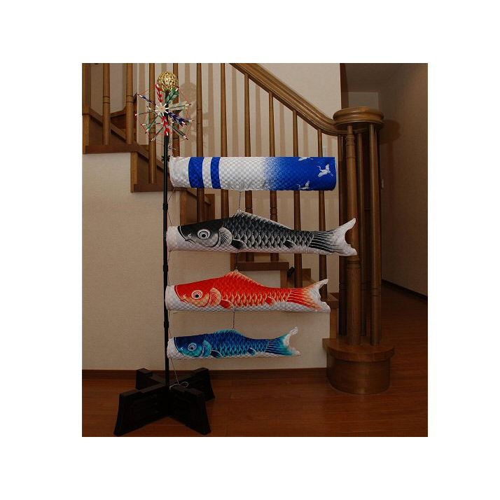 ●吹流し60cm黒鯉70cm赤鯉60cm青鯉50cm高さ約148cm ポリエステル、専用ポール・スタンド付